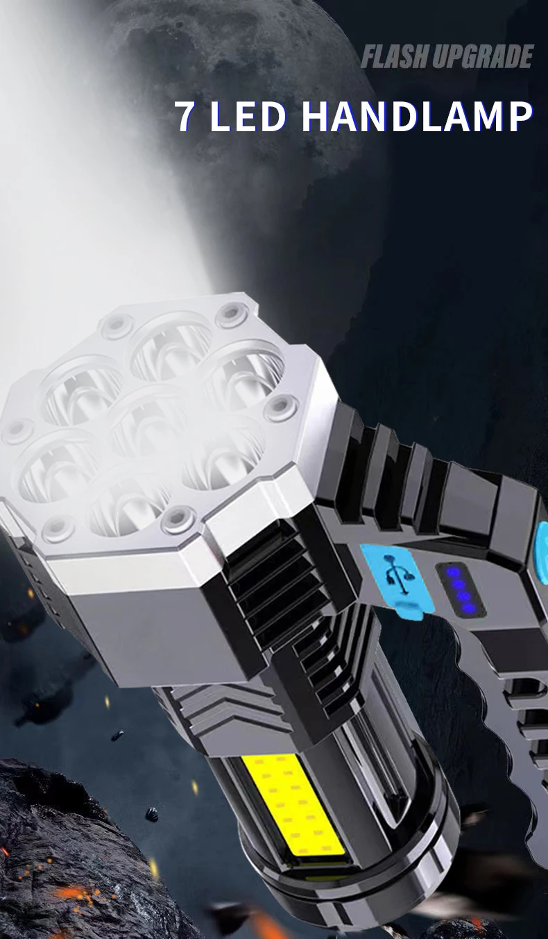 • High Power LED :The flashlight features 7 high power LED lights that provide a bright and clear beam, making it perfect for outdoor activities like camping and hiking.